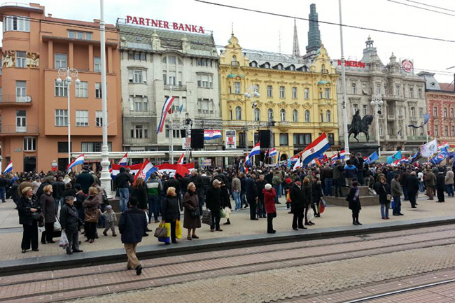 Са свог протестног скупа у главном граду земље - који је организовао „Штаб за одбрану хрватског Вуковара“ - упутили су ултиматум властима да у наредна три месеца покрену законску процедуру за проглашење Вуковара „градом од посебног пијетета“ и онемогуће увођење ћирилице као службеног писма у том граду.