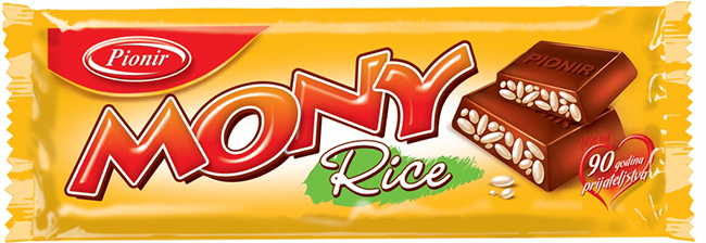 Реч је чоколадици са пиринчем Мони, коју производи Пионир из Суботице.