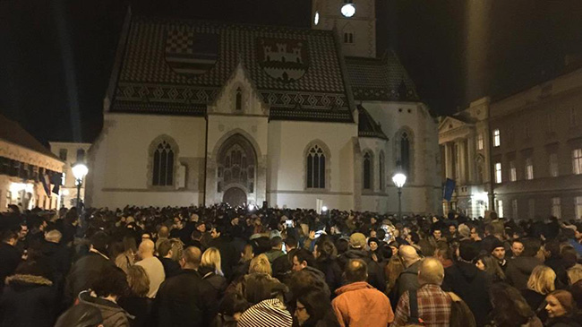 ПРОТЕСТ РАДНИЧКЕ ФРОНТЕ ОКУПИО ВИШЕ ОД 1.000 НА ЗАГРЕБАЧКОМ МАРКОВОМ ТРГУ