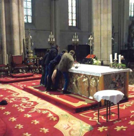 На „лицу места“ одмах се нашло обезбеђење, док су часне сестре крупном, младом мушкарцу довикивале „Сотоно!”. Истовремено су од групе туриста, која се затекла у катедрали, тражиле да га не фотографишу.