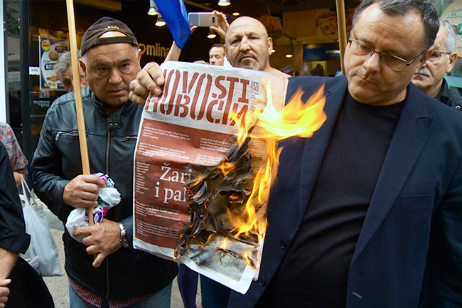 Председник те непарламентарне странке Дражен Келеминец је на протесту запалио примерак недељника „Новости“, који издаје СНВ, рекавши да је СНВ позивао на подметање пожара у Хрватској у јеку туристичке сезоне.