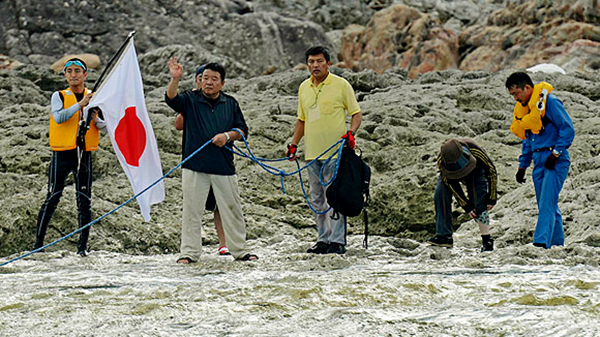 ДЕСЕТАК јапанских политичких активиста - игноришући упозорења и претње Кине - искрцало се на спорном острву Сенкаку. Још су на њему - поболи националну заставу.