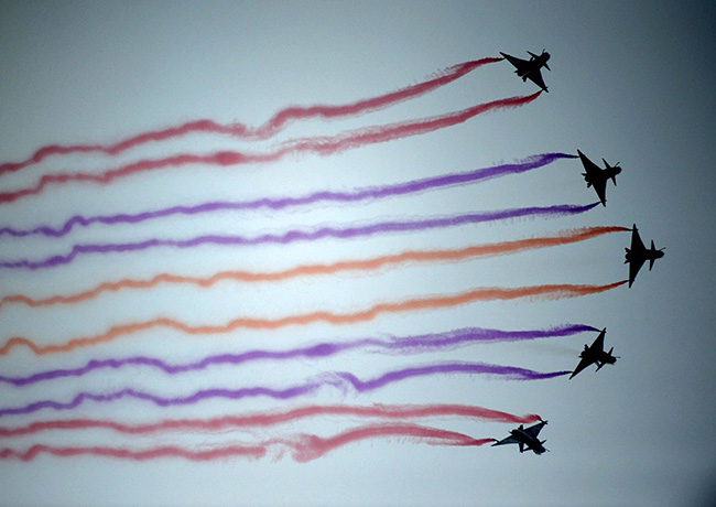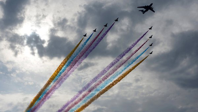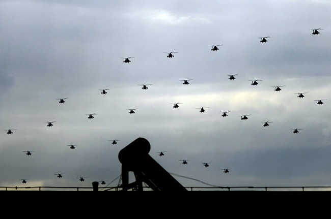 Војни хеликоптери надлетали су град, у формацији броја 70 (година од завршетка рата).