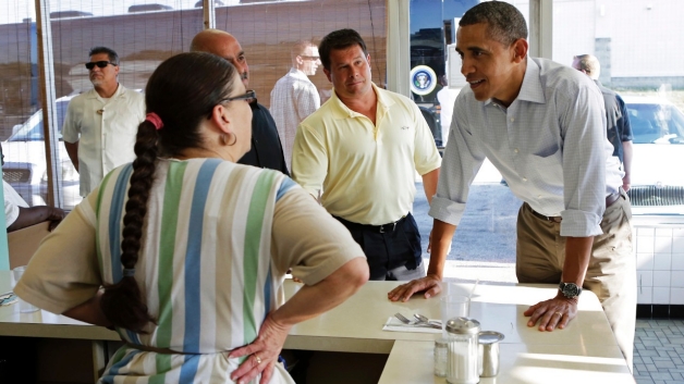 Обама, који је тог јутра завршио дводневну изборну турнеју аутобусом у суседној држави Пенсилванији, зауставио се накратко да би доручковао у њеном ресторану.