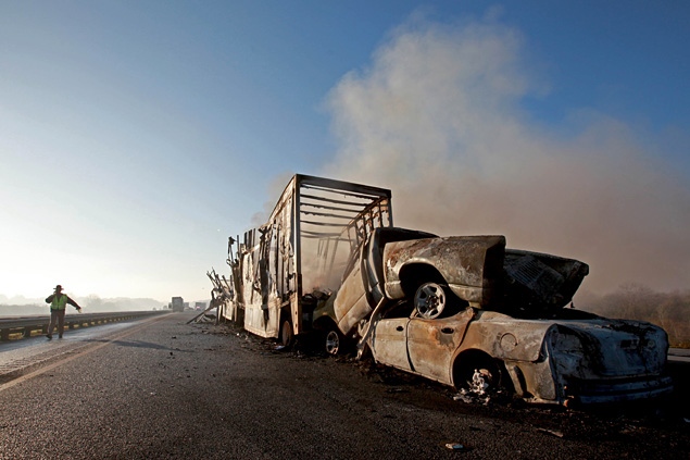 До несреће је дошло због смањене видљивости проузроковане густим димом који је због запаљеног шипражја прекрио аутопут.