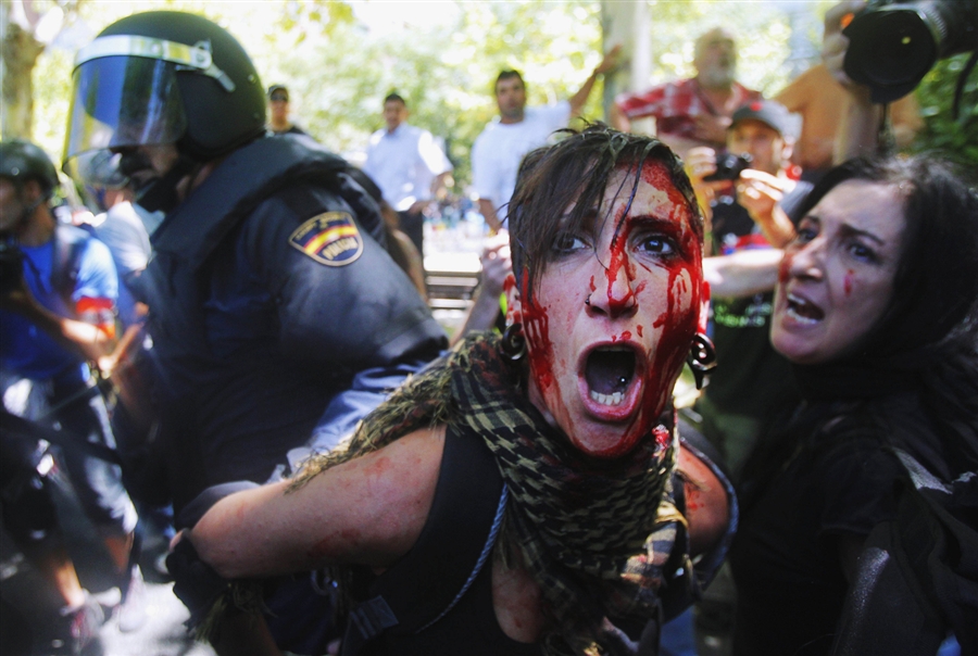 Шпанске власти су увеле низ нових мера штедње с циљем уштеде 80 милијарди евра. Протести и сукоби с полицијом трају, заправо, већ целу недељу.