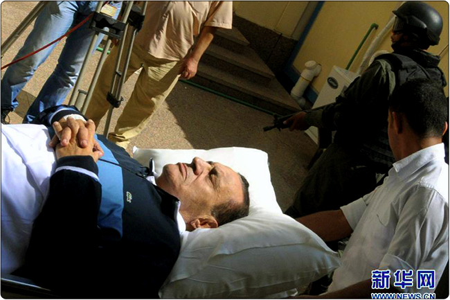 Државна телевизија је приказала снимке возила хитне помоћи којима је 84-годишњи Мубарак пребачан од хеликоптера до полицијске академије која је преуређена у судницу.
