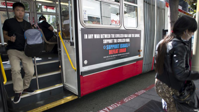 Исти текст је недавно био постављен на аутобусе у Сан Франциску што је неке навело да цртају по постерима и уклањају реч "џихад".