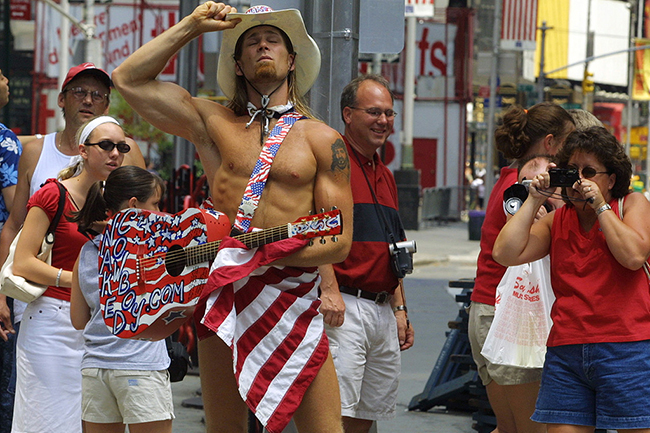 - Знаменити човек Роберт Берк, више познат као „Голи каубој“, такође се изјаснио о својим председничким амбицијама. Током 12 година он свира кантри на Тајмс-скверу, редовно се смрзавајући (од одеће има само шешир, чизме и купаће гаћице, а сада је одлучио „да журку пренесе у Белу кућу“