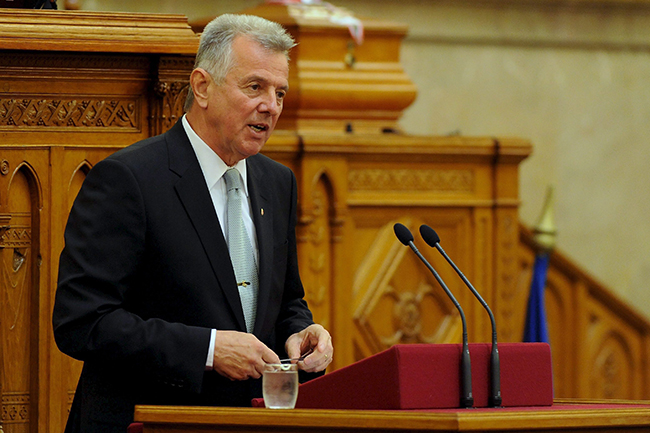 „Према мађарском уставу, који сам потписао, председник представља јединство нације. У овој ситуацији, када моја лична ствар уноси раздор у моју вољену нацију, уместо да је уједињујем, моја је дужност да окончам своју службу и поднесем оставку на положај председника“, изјавио је у Шмит парламенту.