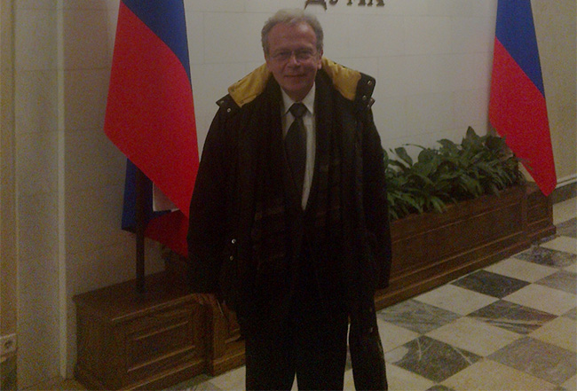 Председник Покрета за Србију Владимир Кршљанин, који је претходних дана био један од иностраних посматрача на изборима у Новоросији, задржао се на повратку из Луганска у Москви, где је у Државној Думи имао одвојене разговоре са првим замеником председника Комитета за међународне послове Леонидом Калашњиковим и чланом Комитета за одбрану Вјачеславом Тетјокиним.