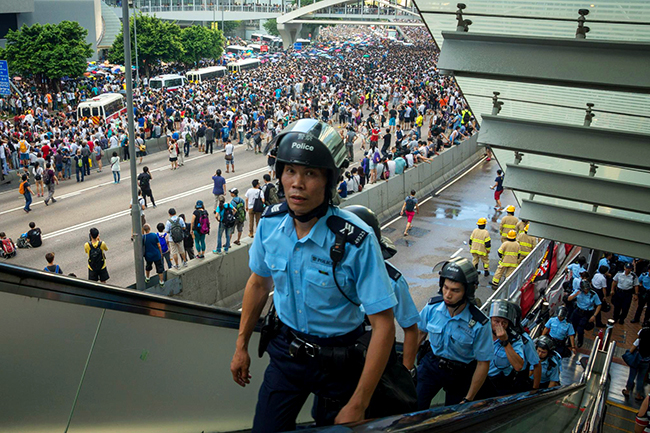Вође пртестног покрета Occupy Central, који је и данас изводио своје активисте на улице, од јуна организује релативно масовне акције у Хонгконгу. Кинески медији тврде да су „сви Occupy Central прошли специјалну обуку америчких специјлних служби“.