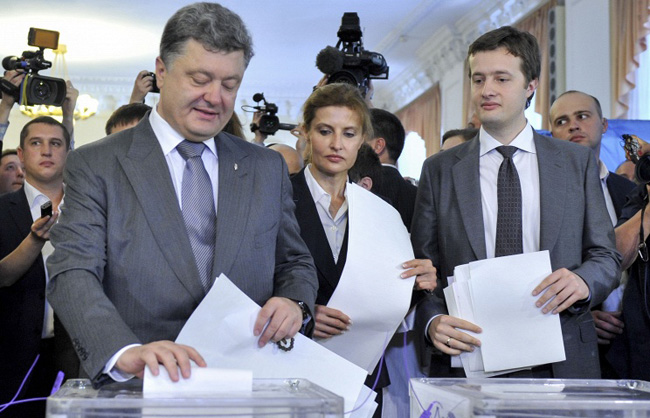 Кијевска хунта објавила је ванредне председничке изборе „одржаним”. А према exit poll подацима три водећа кијевска социолошка центра, који су под контролом амбасаде САД у Кијеву, на њима је – већ у првом кругу – победио тајкун Пјотр Порошенко са 55,9 одсто гласова.