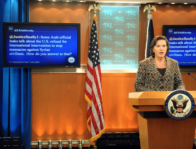 ПОРТПАРОЛКИ Стејт департмента, Викторији Нуланд, новинари су поставили питање: да ли је за улазак у „групу земаља пријатеља Сирије”, која се формира под диригентском палицом Вашингтона, „потребно бити пријатељ САД”? Питање је било постављено поводом Русије и њеног држања у „сиријској кризи”, а од Нуландове је тражен одговор – може ли Русија ући у „групу земаља пријатеља Сирије”?