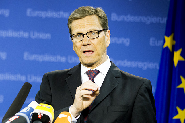 Вестервеле је ових дана рекао да је Влада у Берлину за мирно решење сиријске кризе и поново одбио испоруку оружја сиријским побуњеницима, указујући да су, уместо тога, шефови дипломатије ЕУ-земаља обликовали политику санкција, тако да се сиријској опозицији могу испоручивати, на пример, панцири за људску заштиту или апарати за откривање мина.