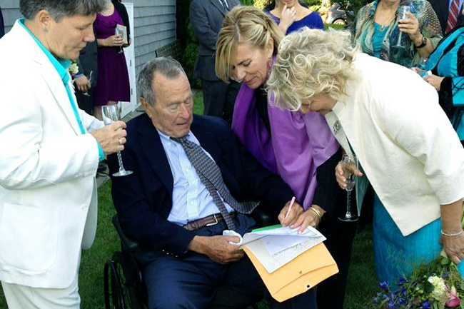 Истог дана, Торгалсен је објавила на својој Фејсбук страници фотографију на којој 89-годишњи Буш, седећи у инвалидским колицима, ставља свој потпис у матичној књизи венчаних.