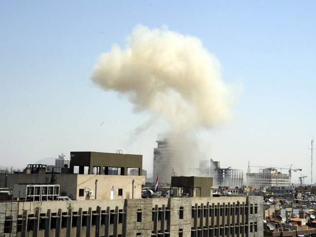 Руска државна агенција ИТАР-ТАСС јавила је да се над делом Дамаска вију облаци дима и да се у деловима града воде борбе јер «ради» артиљерија и чују се експлозије граната.