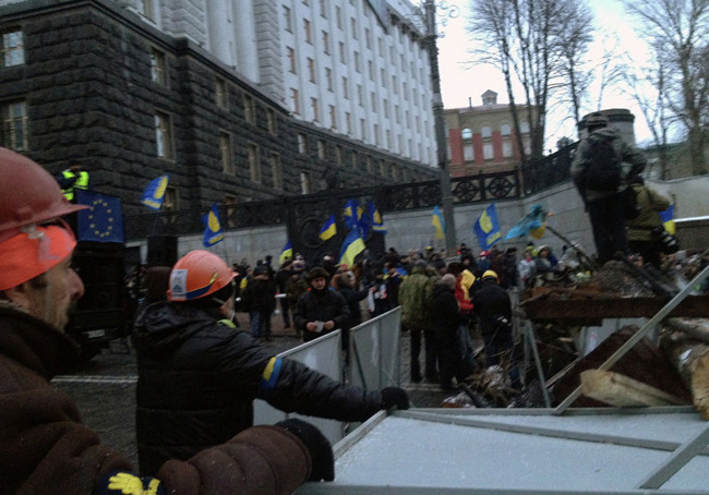 Демонстранти у центру Кијева подижу нову велику барикаду