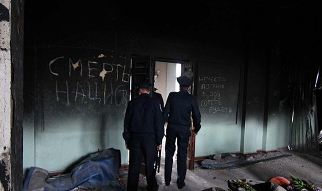 Екстремисти из Десног сектора и њихове присталице су 2. маја 2014. године у Одеси запалили Дом синдиката у којем су се сакрили од руље активисти „антимајдана”.