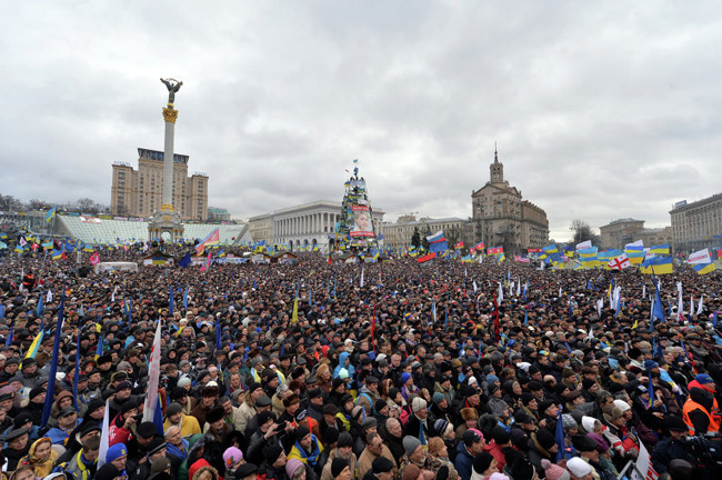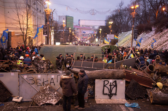 У тренуцима када демонстранти већ блокирају „владин кварт” у Кијеву и око њега разапињу шаторе и подижу барикаде.