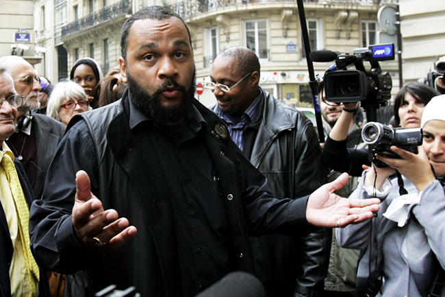 - Хумориста Диедоне Мбала-Мбала досад више пута био оптуживан за антисемитизам, а власти стално онемогућавају његове наступе по градовима у унутрашњости земље