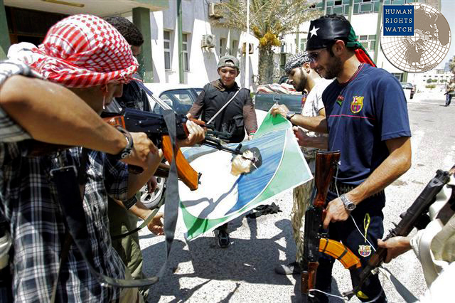 У извештају ове организације за (селективну) заштиту људских права о недозвољеном поступању побуњеника након заузимања града Сирта октобра 2011. после одлучујуће битке осмомесечног грађанског рата комбинованог са агресијом западних држава, даје се најдетаљнији опис онога што група назива ратним злочинима почињеним од стране побуњеника који су збацили са власти Гадафија, а који играју кључну улогу у либијској политици данас.