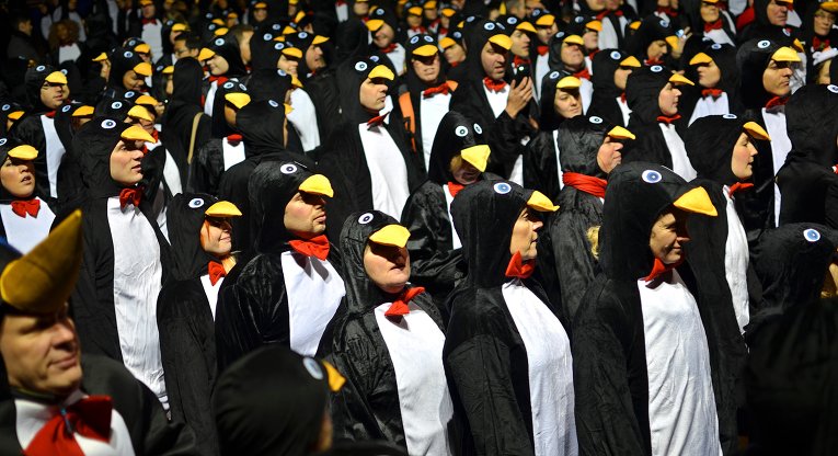 Највећи број људи одевених „као пингвини“ - а окупљених на једном месту – сада износи 325. Овај рекорд су поставили Британци, у организацији извесног Ричарда Хауса.