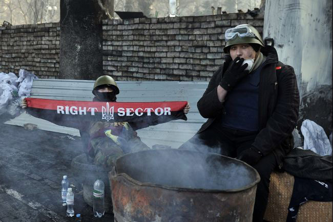 Овоме треба додати да су на митинзима били и представници политичких партија, међу којима и присталице Виталија Кличка и Арсенија Јацењука. Политичко руководство је у одређеном моменту изгубило контролу над ситуацијом. Након тога је мајдан прешао у руке Десног сектора и одреда самоодбране Андреја Парубија. Све се ослањало на групе ових бојовника. То су људи који искрено верују да настављају дело Степана Бандере. Они сматрају да је тренутна ситуација у Украјини наставак ситуације из 1941. године када су њихови преци радо сарађивали са фашистичком Немачком.