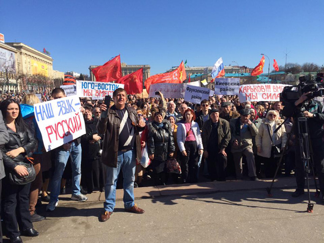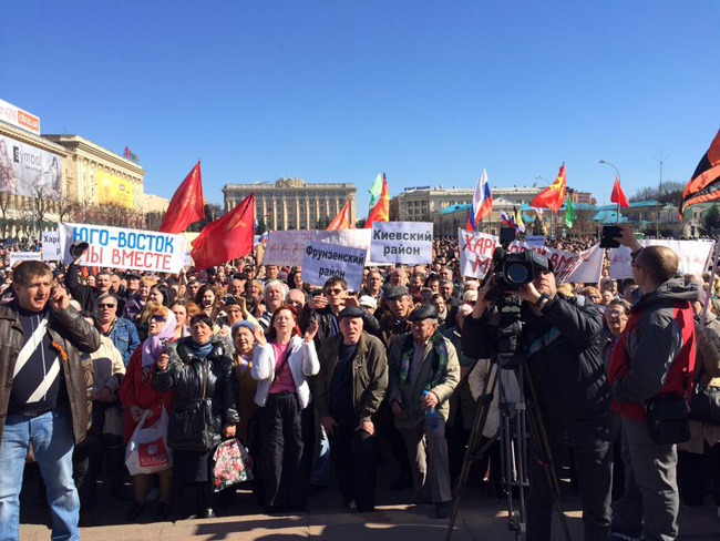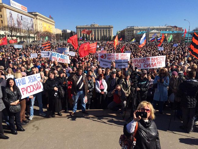 Окупљени су од власти Харковске области затражили да за 27. април распише регионални референдум на којем би се гласало о једном једином питању: Да ли си сагласан да Украјина постане федерално уређена држава?