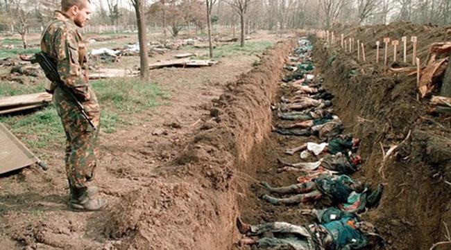 „Нашли смо 15 чаура калибра 9 мм, на основу анализе рана може се закључити да су убијени коришћени као мете, а да су потом били „оверени” хицима у главу” – истакао је Мирошниченко.