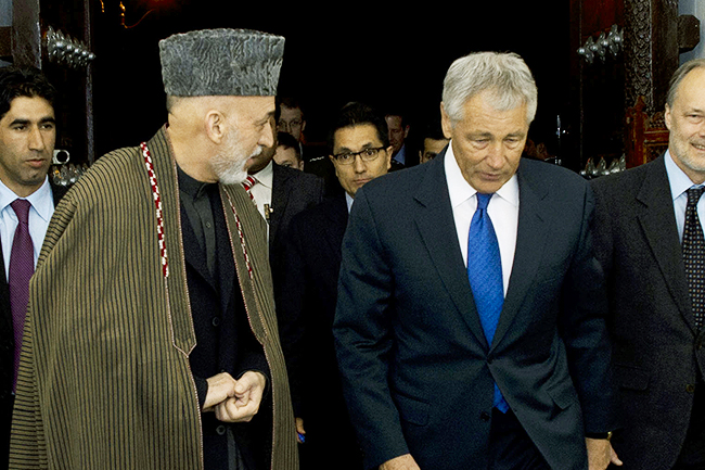 Након доласка Хејгела десила су се два самоубилачка напада - један у Кабулу и један у провинцији Хост. Карзаи је указао да су управо ти напади били унапред договорени између САД-а и Талибана - би Американци кренули с планом креирања „оправдања“ за дугорочни останак у земљи.