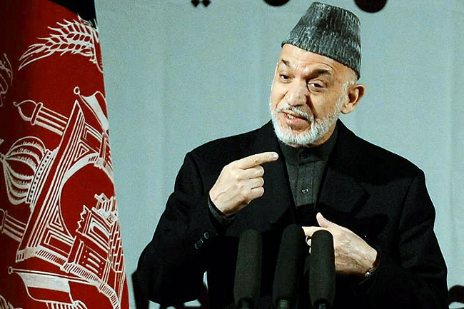 „Наши услови су да САД појача напоре у мировном процесу, ојача безбедносне снаге Авганистана, обезбеди конкретну подршку економији, изградњи електромреже, путева, брана и да обезбеди помоћ у руковођењу”, казао је Карзаи.