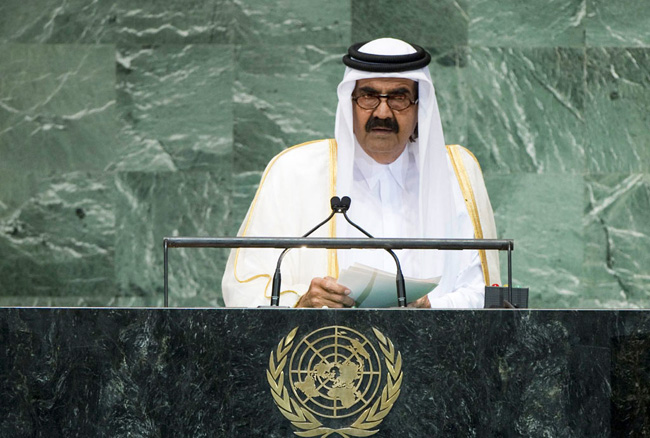 ЕМИР Катара Халифа бен Хамад Ал Тани током 67. заседања Генералне Скупштине, изјавио је да чланови Савета Безбедности УН није способан да дође до јединственог става о решења конфликта у Сирији.