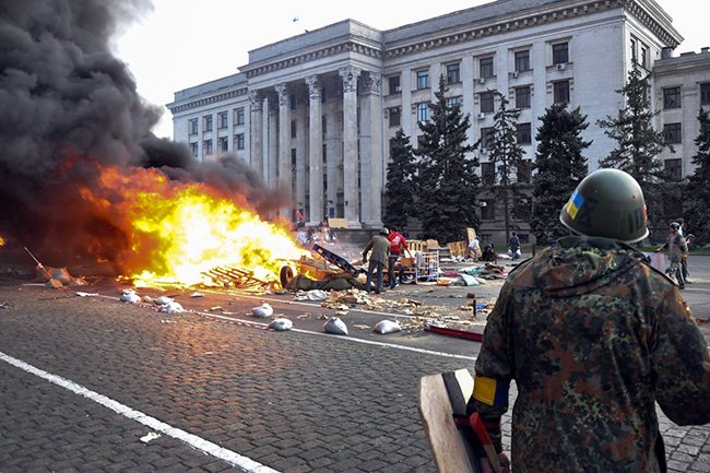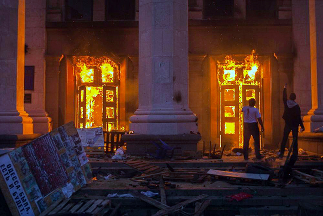 Пожар у одеском Дому синдиката догодио се 2. маја 2014. године. Тада су бојовници Десног сектора и такозване самоодбране Мајдана, који су стигли из Кијева, направили погром у кампу на тргу Куликово поље, где су присталице федерализације Украјине прикупљале потписе за референдум.