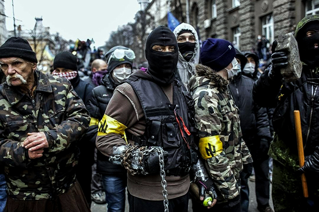 „Команданти такозваног „евромајдана“ - а они су сви посланици у Врховној Ради - агресивним младим људима деле масивне дрвене палице дужине до два метра са металним оковом на врху. Такве палице нису ништа друго до опасно хладно оружје које ће, нема сумње, бити коришћено за наношење повреда припадницима снага реда“ - наглашава се у саопштењу украјинског министарства.