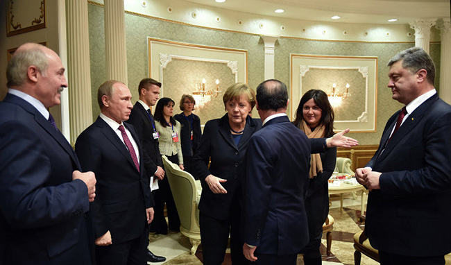 УЧЕСНИЦИ преговора у Минску – „нормандијска четворка” коју чине Владимир Путинм Ангела Меркел, Франсоа Оланд и Петар Порошенко – усагласила је сва питањаповодом конфликта у Донбасу, осим конроле границе са Русијом коју контролишу самопроглашене Доњецка и Луганска Република.