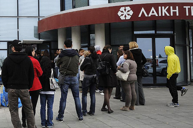 Банке на Кипру затворене су прошле недеље, а подизање са банкомата ограничено на 100 евра дневно након панике изазване најавама да ће држава, на захтев тројке, скидати новац са рачуна свих штедиша, укључујући и оне са испод 100.000 евра на рачуну.