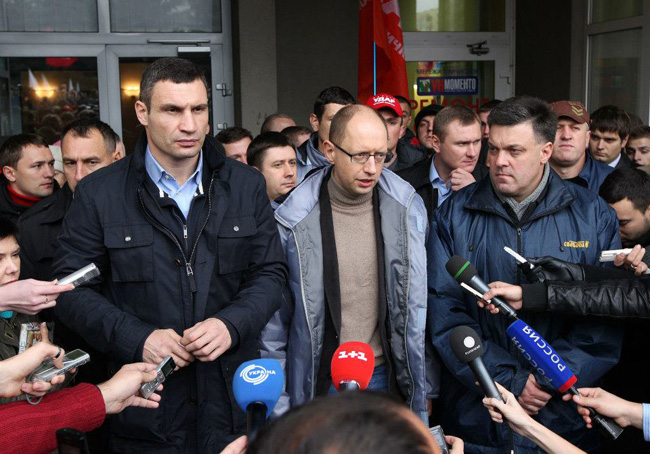Како је саопштила прес служба Јацењукове партије Баткившћина, том разговору ће присуствовати и амерички сенатор Џон Мекејн. Потом ће им се присружити и висока представница ЕУ за иностране послове и безбедност Кетрин Ештон, председник Немачке Јоахим Гаук и министар иностраних послова Немачке Франк-Валтер Штајнмајер.