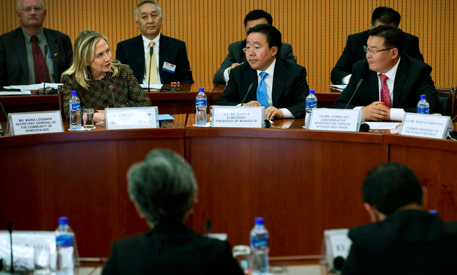 „Истина је да можете ограничити политичко изражавање и држати чврсти стисак по питању шта људи смеју да читају, кажу и виде и тако стварати илузију сигурности. Али, илузије бледе... јер народ и даље чезне за слободом“, рекла је Клинтонова на демократском форуму у главном граду Монголије.