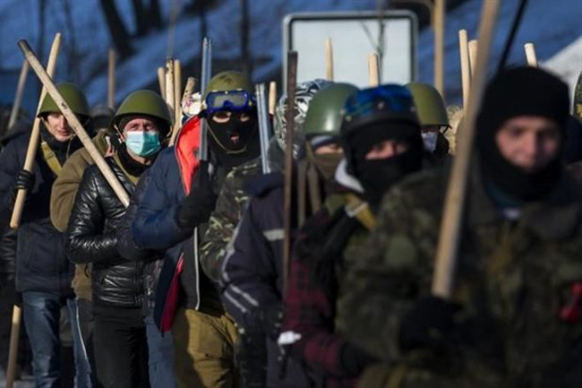 У главној улози су „Народни добровољци Донбаса” који су украјинским војницима и официрима довикивали: „Враћајте се одакле сте дошли!”. Још су непрекидно скандирали: „Ру-си-ја, Ру-си-ја!” и „Пу-тин, Пу-тин!”.