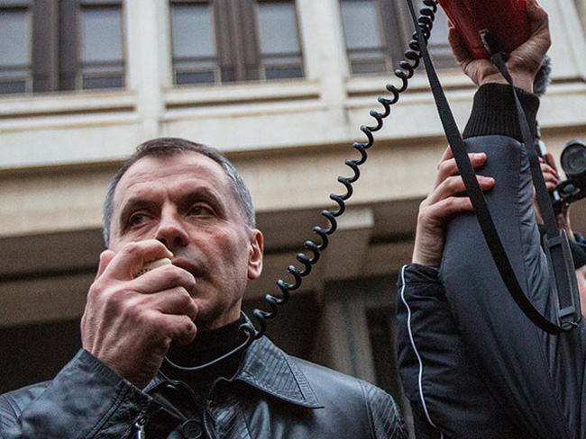 Аксјонов је објаснио да је дошло до напада непознате наоружане групе на зграде кримске владе и Врховног совјета. Напад би успео да га нису спречили већ формирани локални „одреди самоодбране”.