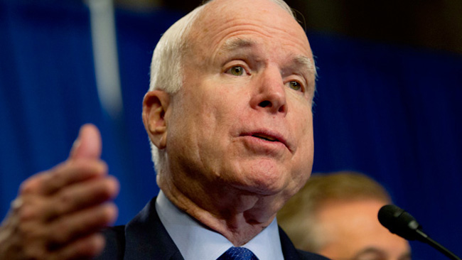 Он је, гостујући у недељном преподневном програму СиБиЕс (ЦБС) телевизије, критиковао администрацију председника Барака Обаме због немешања у сиријски конфликт, заложивши се за успостављање зоне забрањеног лета над том земљом, као и за наоружавање побуњеника.