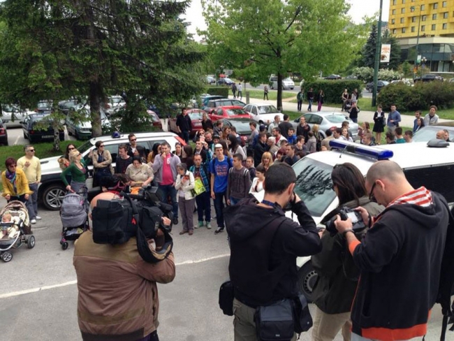 ИСПРЕД зграде Парламента БиХ демонстрира више стотина грађана који на миран начин негодују јер Савет министара Бих још није донео закон о ЈМБ, већ привремено решење о издавању јединствених матичних бројева.