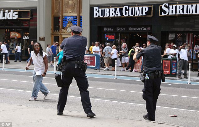 Полиција тврди да је све почело од тога што су њени припадници приметили мушкарца како пуши марихуану насред улице, а да је он - кад су му се приближили - извадио кухињски нож и почео да прети.