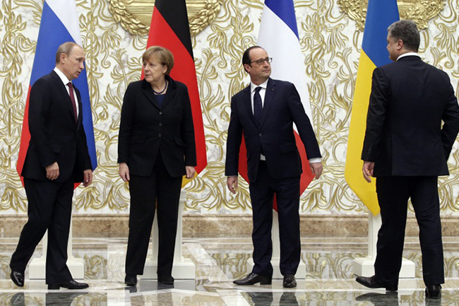 Владимир Путин, Ангела Меркел, Франсоа Оланд и Петр Порошенко су на преговорима у Минску 11-12 фебруара усагласили план нормализације ситуације у Украјини.