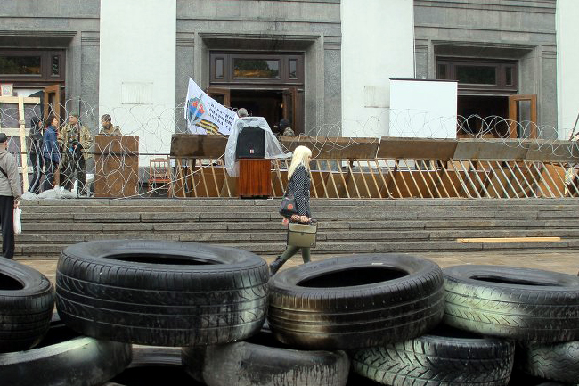 Његова Национална гарда и бојовници неонацистичког десног сектора, који наступају као ударна песница власти, поново нападају Славјанск и Краматорск.