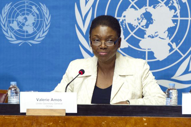 „У последњих неколико недеља и месеци, суочили смо се са претњама хуманитарним активистима са различитих страна. Као што знате, убијено је много волонтера Сиријског друштва Црвеног Полумесеца. Осим тога, убијени су и сарадници УН. Било је и киднаповања наших сарадника“ - рекла је Амос на видео прес конференцији у седишту светске организације.