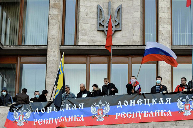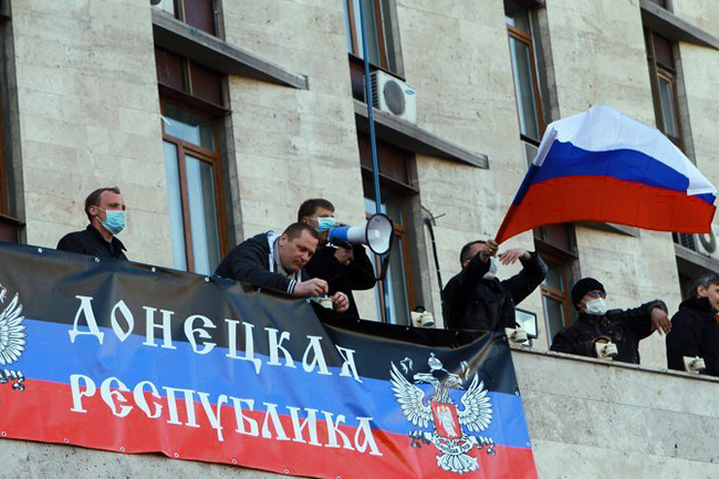 У међувремену је застава Доњецке области на седишту њене администрације замењена импровизованом заставом Доњецке Републике са руским грбом.