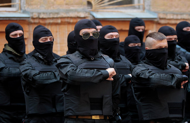 За Кијев ратују батаљони специјалне намене „Азов” и „Донбас”, као и представници екстремистичког неонацистичког политичко-војног покрета Десни сектор.