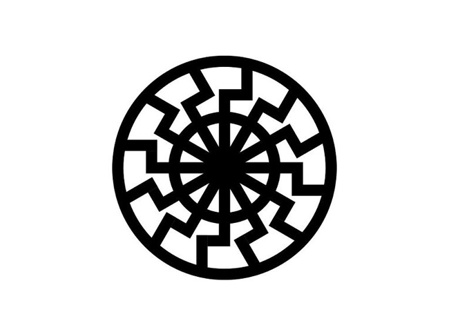 У другом плану је симбол „Црно сунце” (Schwarze Sonne). То је окултни амблем Трећег рајха, један од најомиљенијих симбола рајхсфирера СС Хајнриха Химлера.